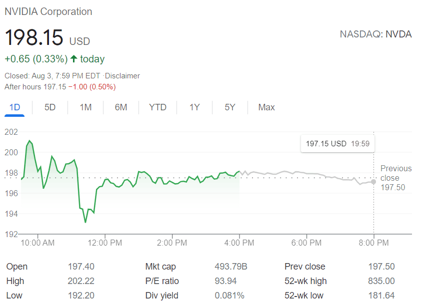 AMD 주가는 5일 연속 2% 이상 상승하면서 5일째에는 3.6% 상승한 112.56달러로 마감하였습니다. Nvidia가 일본 소프트뱅크로부터 영국 기업인 Arm을 400억 달러에 인수하는 것을 영국이 국가 안보상의 이유로 차단할 수도 있다고 블룸버그는 화요일 보도하였습니다. Nvidia 주가는 0.3% 상승한 $198.15에 마감했습니다.
